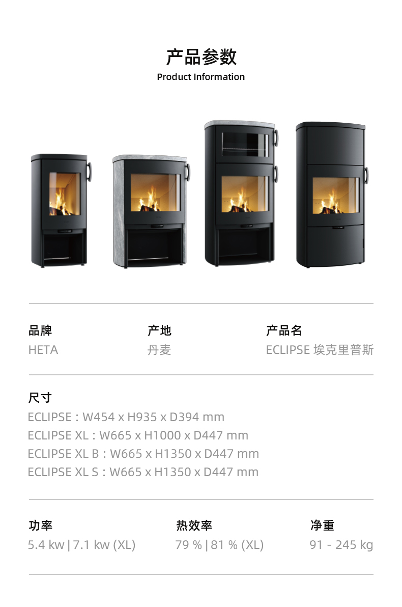 产品名称:丹麦HETA燃木壁炉-ECLIPSE埃克里普斯