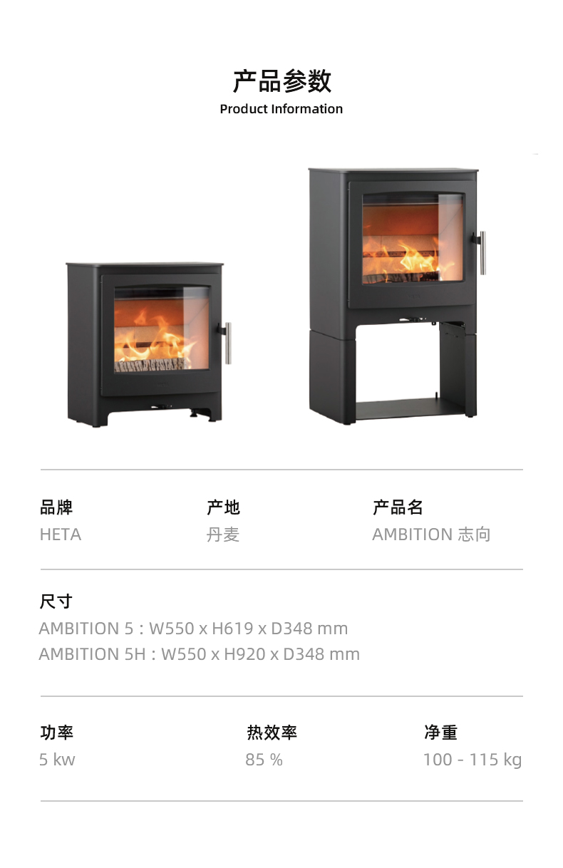产品名称:丹麦HETA燃木壁炉-AMBITION志向