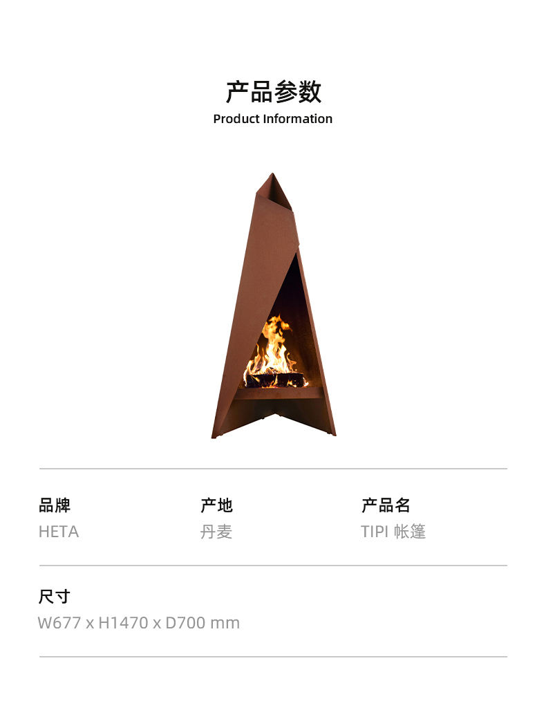 产品名称:丹麦HETA燃木壁炉-TIPI户外